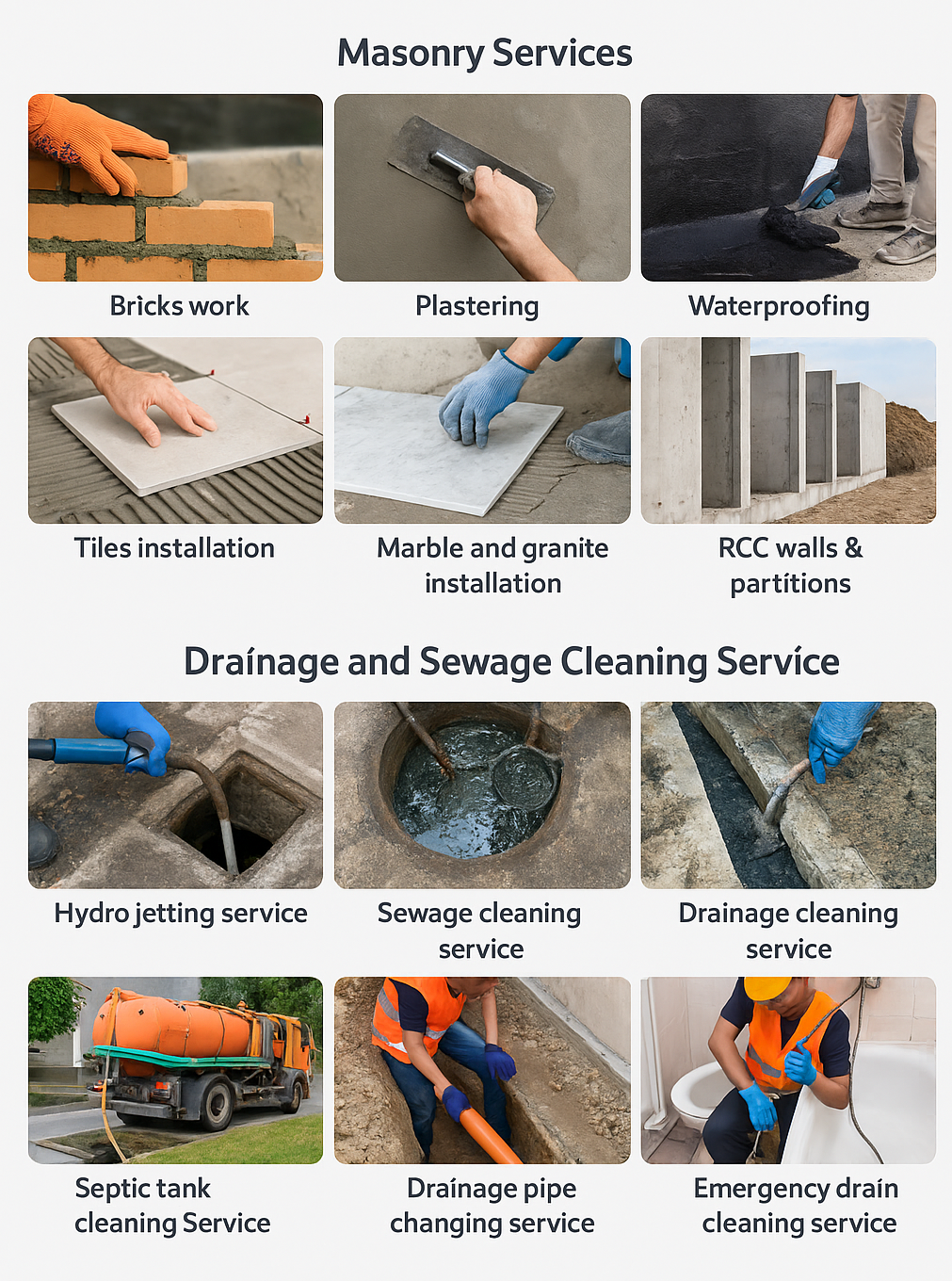 Masonry Services & Drainage and Sewage Cleaning Services